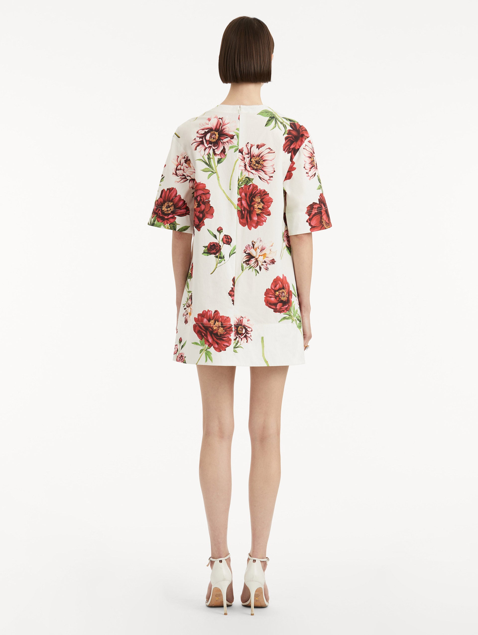 Printed with blooming peonies, this cotton poplin dress brings the flower's inherent beauty to the fore. The dress features oversized, short sleeves and a shift silhouette—offering a fresh, feminine take on effortless day dressing.