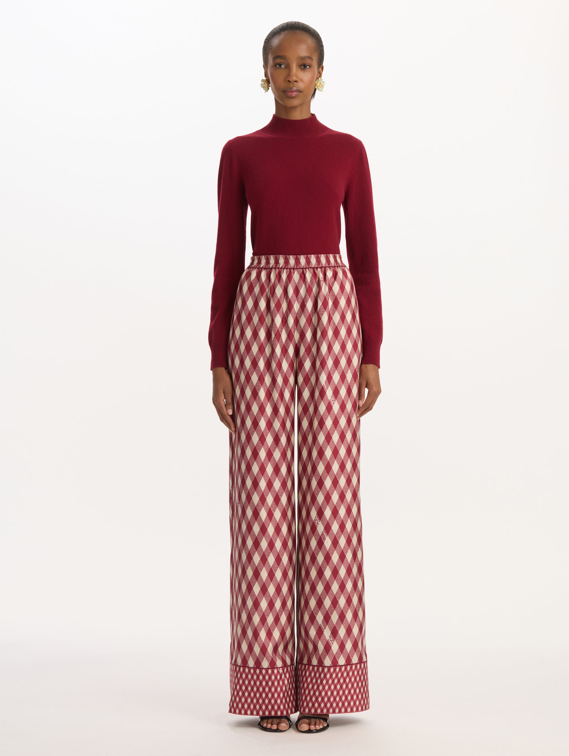 Argyle Silk Twill Wide Leg Pant