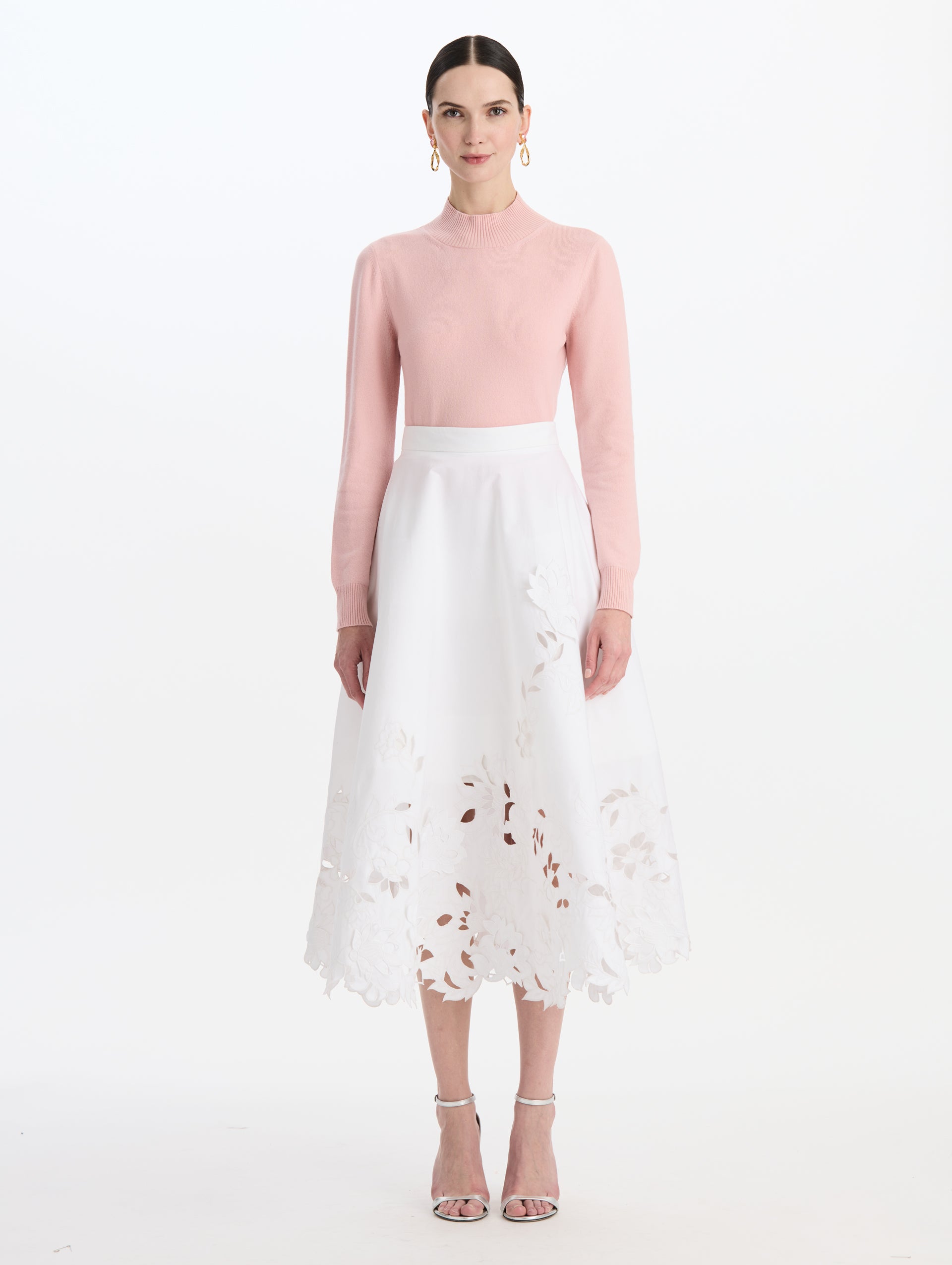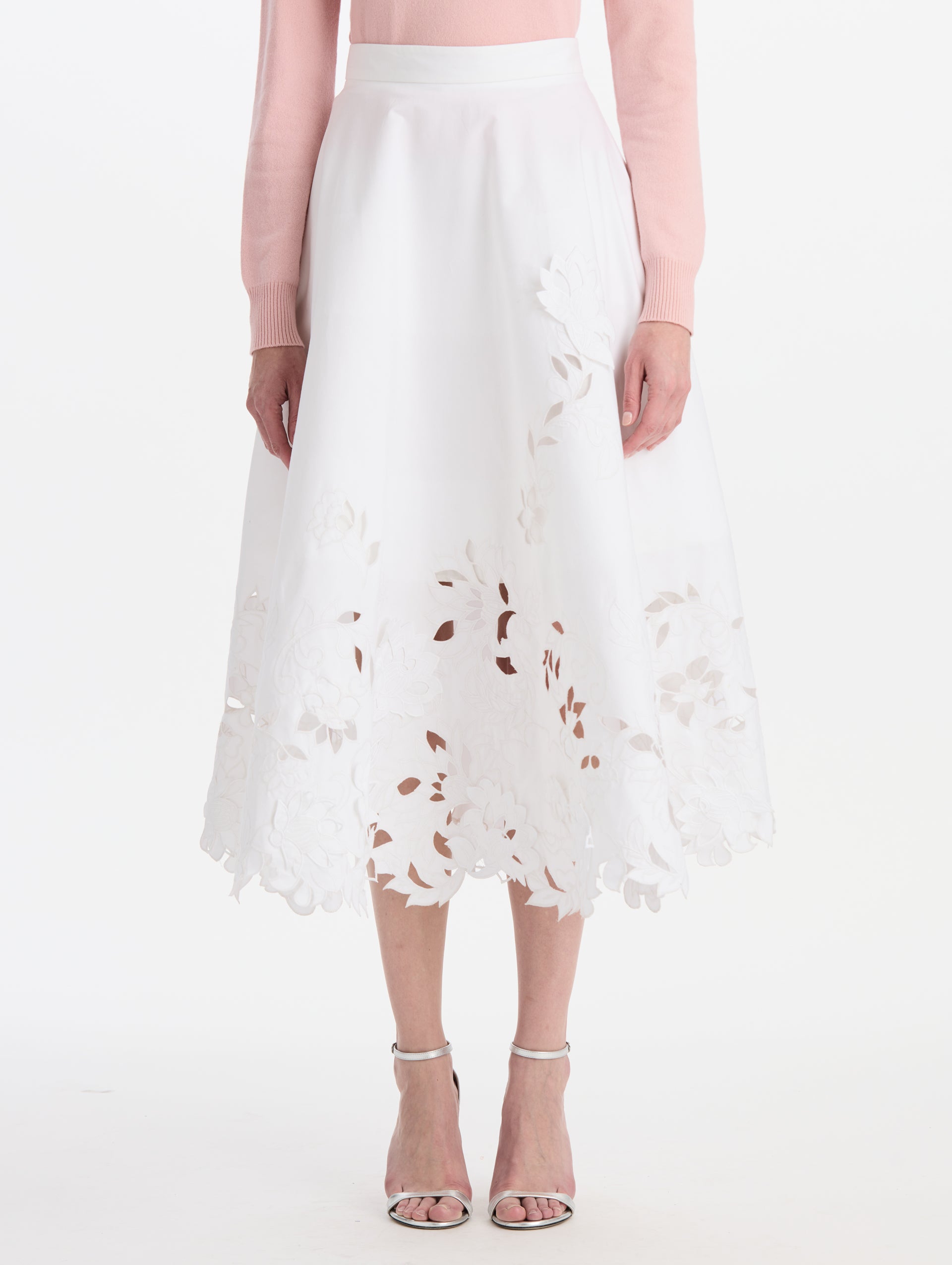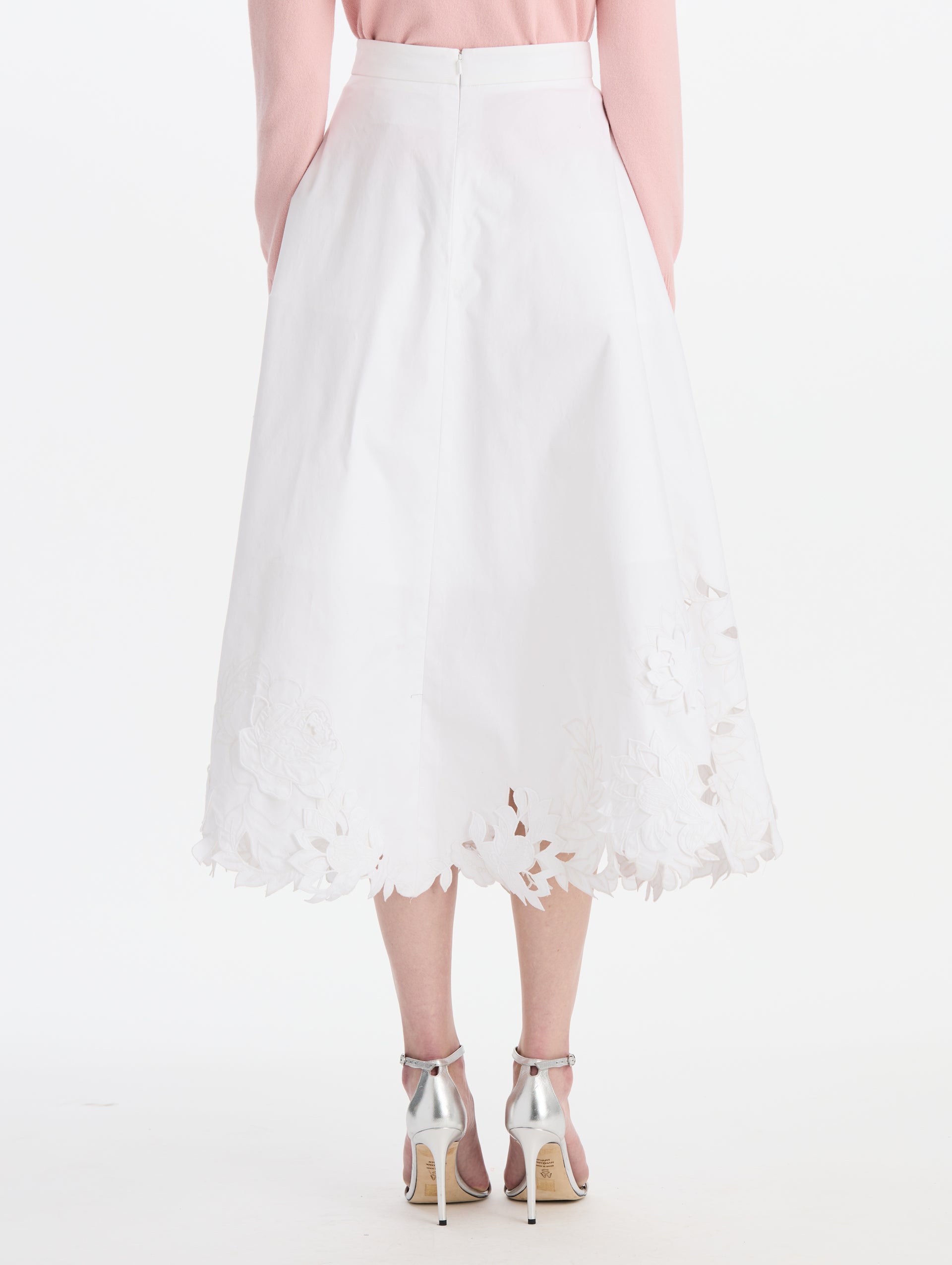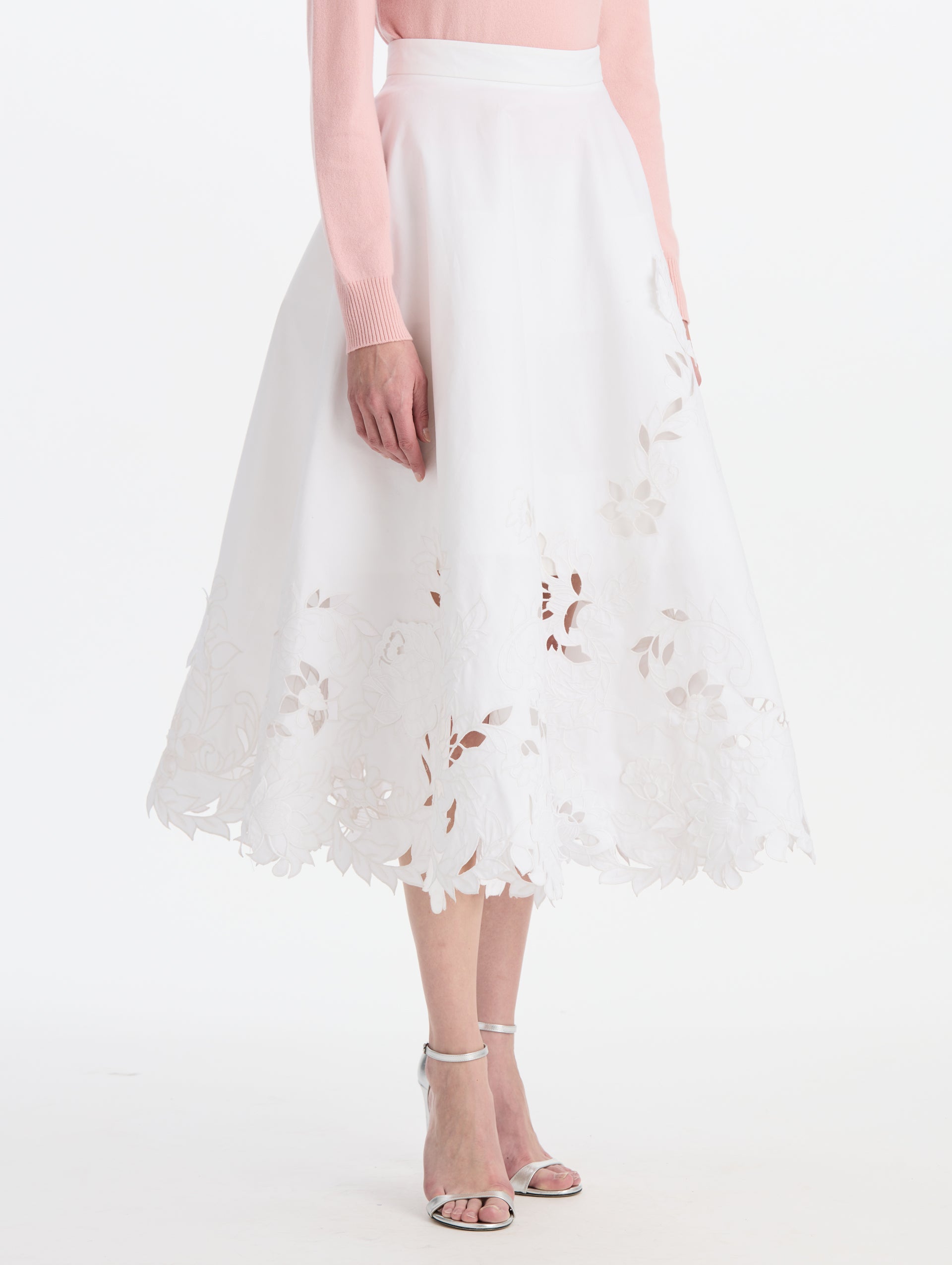 Floral Cutout Cotton Twill Skirt