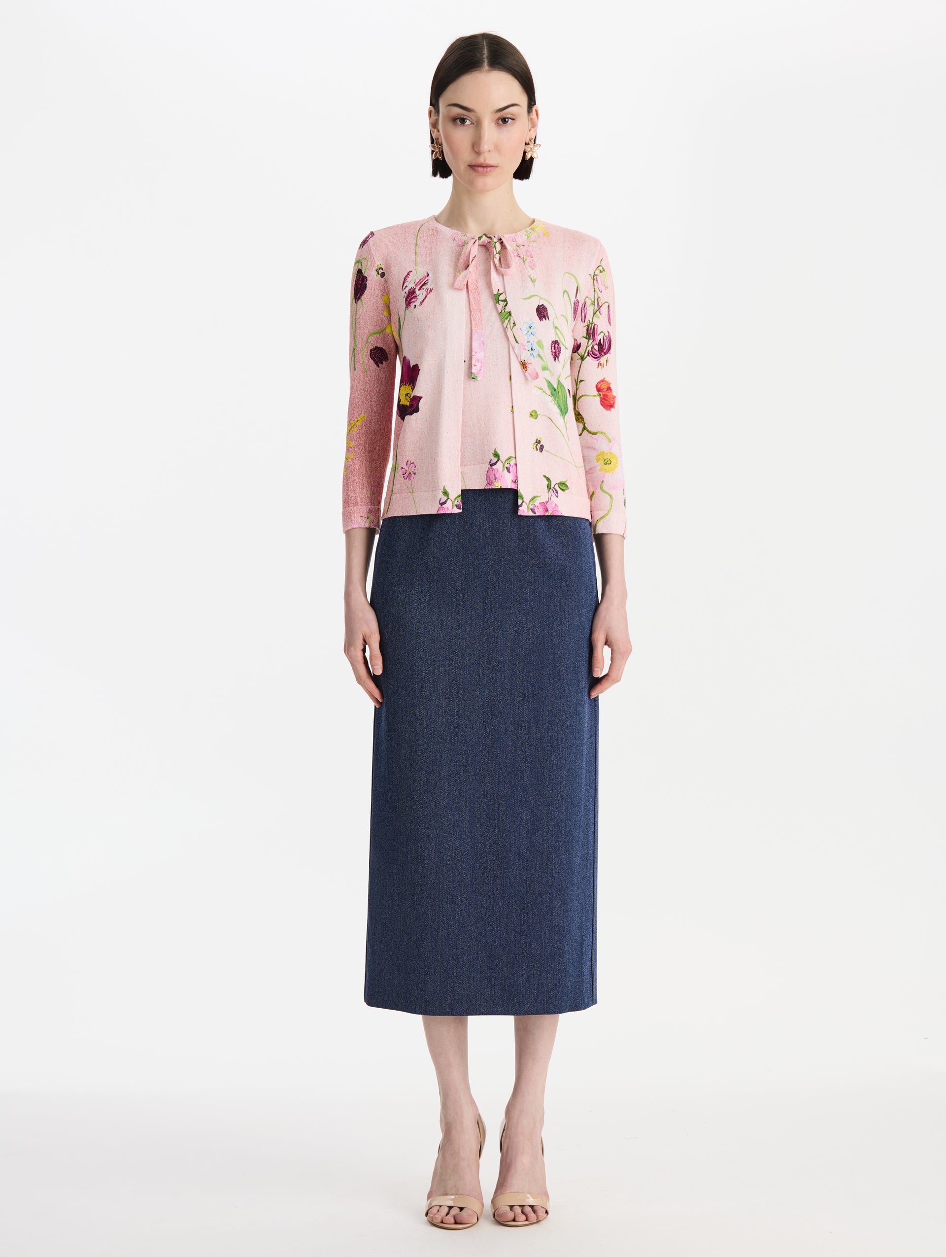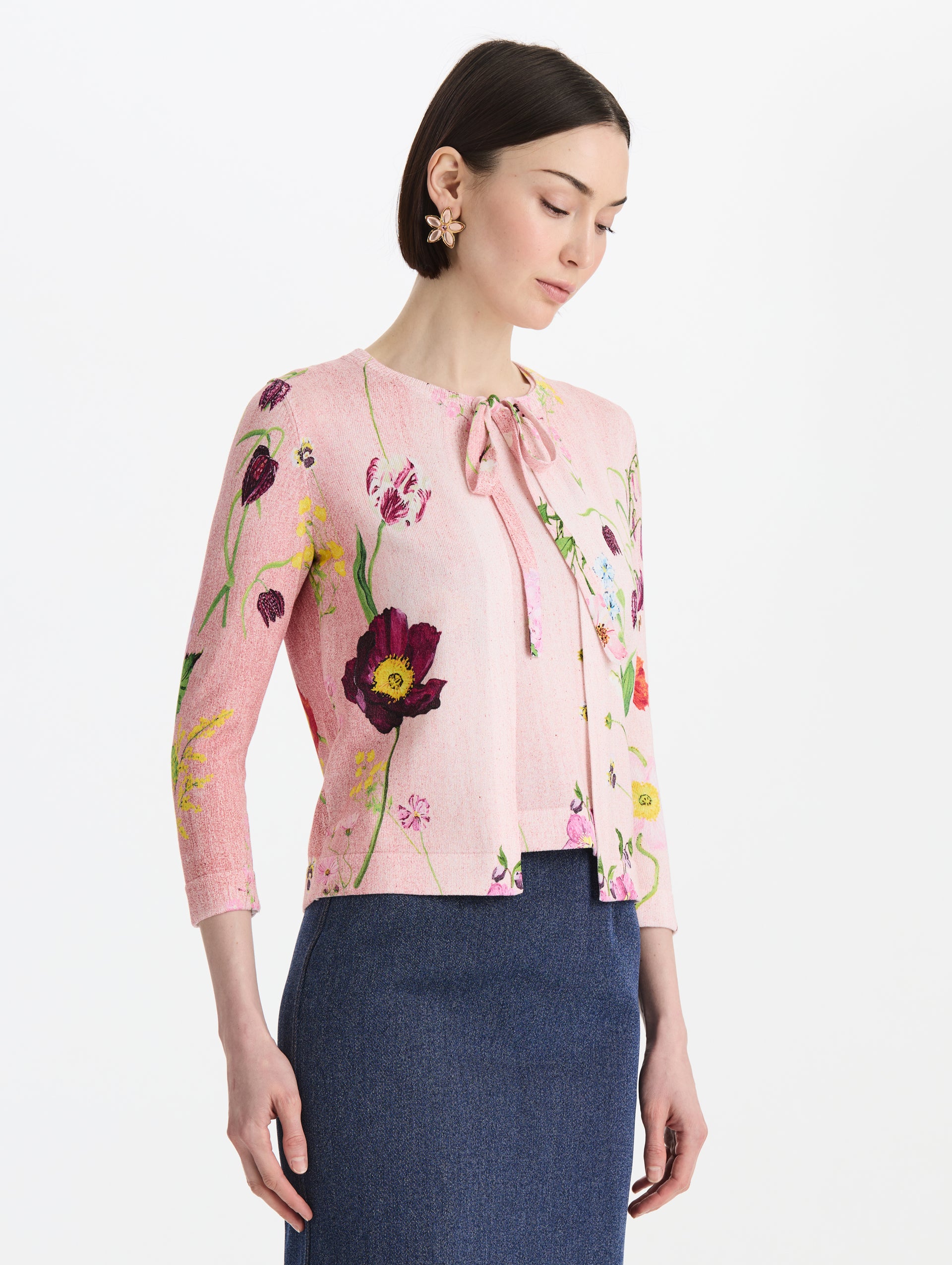 Mixed Botanical Printed Tie Neck Cardigan